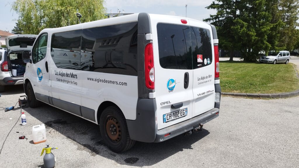 Benjamin, pendant ses vacances, s’est occupé de la rouille du camion. Nico l’a aidé. Au programme, démontage des banquettes, grattage,