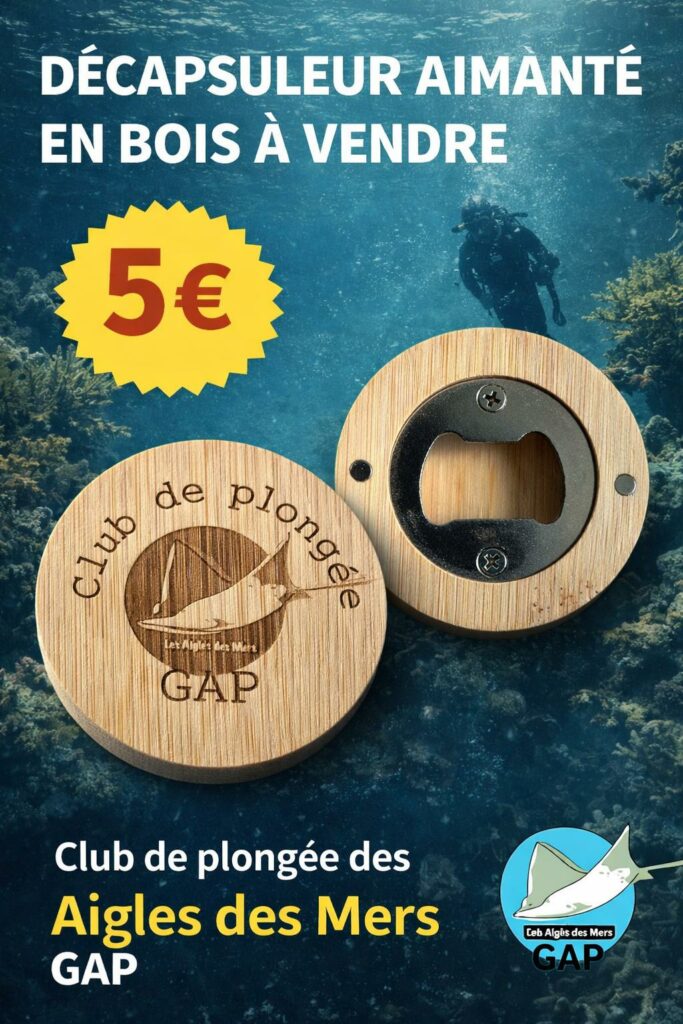 Soutenez le club de plongée les Aigles des Mers avec nos porte-clés et décapsuleurs aux couleurs du club.